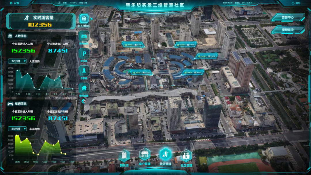“韓樂坊數字孿生智慧社區(qū)”案例由威海市經開區(qū)應急管理局和威海市自然資源和規(guī)劃局聯合建設,是信息化提升改造建設的重要環(huán)節(jié)之一。智慧社區(qū)建設在實景三維單體化精細建模基礎上,成功接入城鎮(zhèn)燃氣、用電、監(jiān)控等城市安全智能物聯網動態(tài)數據,與傳統(tǒng)商圈管理深度融合,構建形成了多維、動態(tài)、實時的面向社區(qū)綜合管理的數字孿生空間,實現了地理空間信息資源在韓樂坊社區(qū)可視化運行管理、實時化動態(tài)監(jiān)測和精準化旅游服務等方面的數據共享應用價值,提升了韓樂坊社區(qū)的智慧服務水平,全面實現實景三維虛擬場景賦能真實社區(qū)管理,為社區(qū)的穩(wěn)健發(fā)展牢筑數據基礎。
