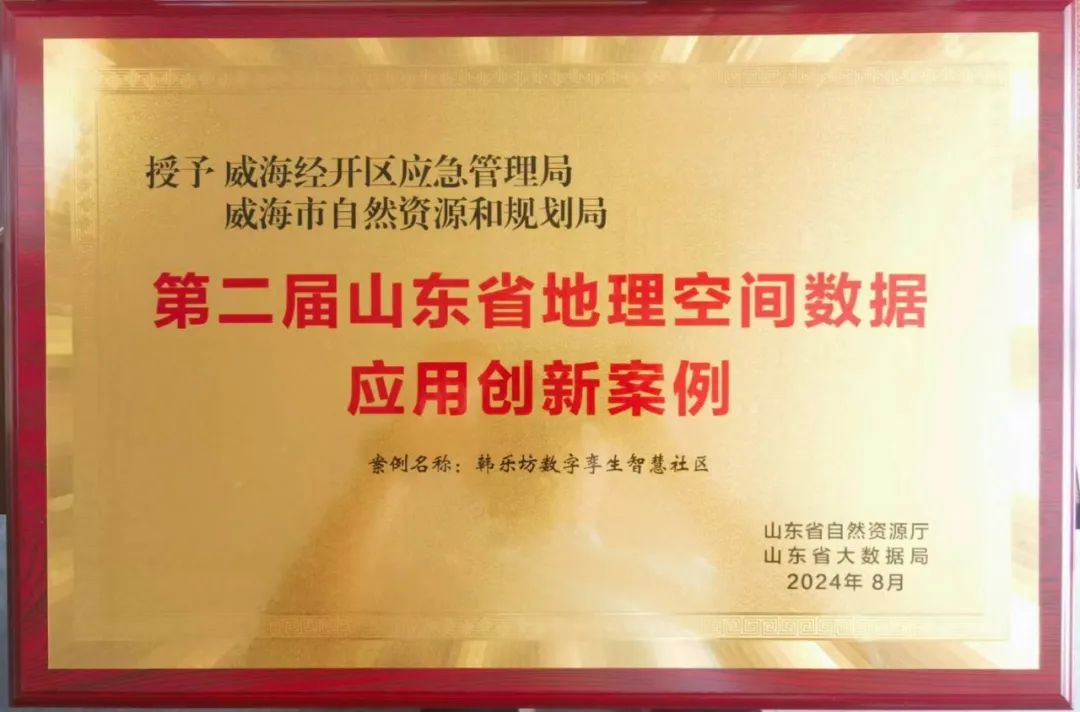 本次全省共評選出20個創(chuàng)新案例,我市推薦的“韓樂坊數字孿生智慧社區(qū)”、“海陸一張圖在漁船管控系統(tǒng)中的應用”案例分別榮獲經濟社會類、自然資源類山東省第二屆地理空間數據應用創(chuàng)新案例。